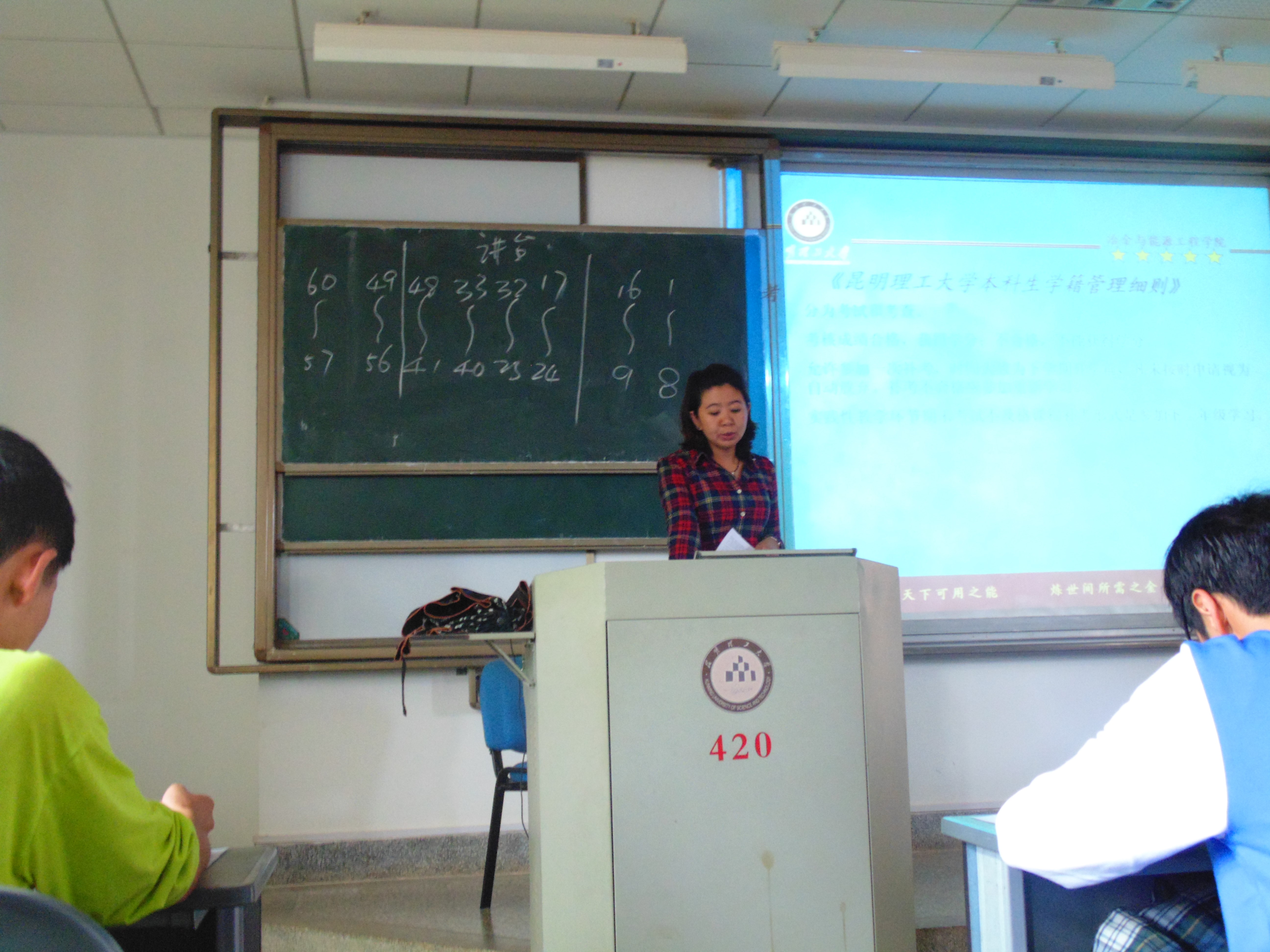 呈贡校区多媒体422教室,分别对冶金专业、能动专业及新能源专业2015级新生举办了入学教育之行为督导专题讲座。本次专题教育讲座由学工办辅导员杜威老师主讲。