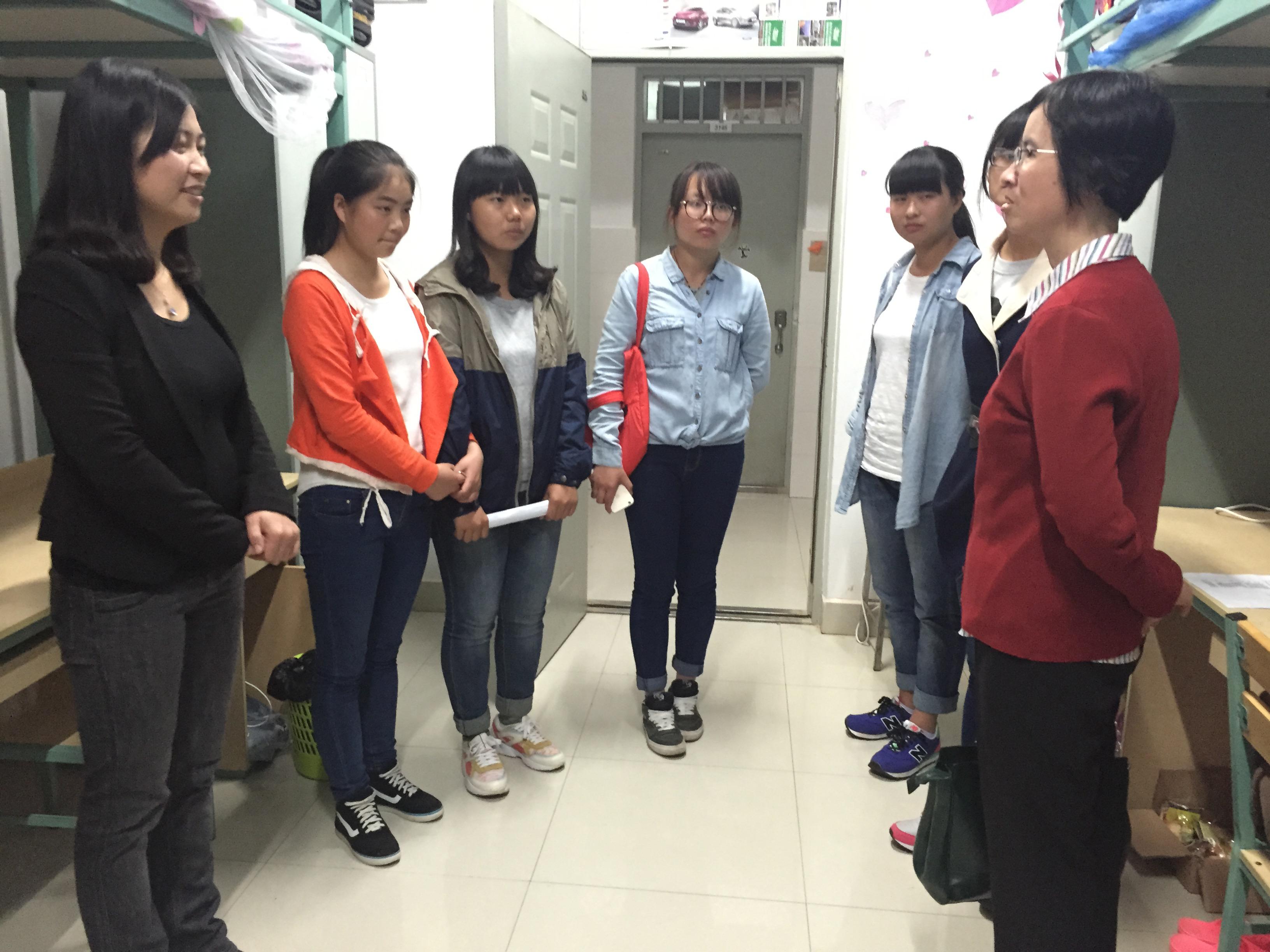 2015年9月17日晚,在冶金与能源工程学院党委书记樊刚教授的带领下,学院领导及各科室负责人来到呈贡校区,开展了学生宿舍走访慰问活动。学院党委书记樊刚教授、副书记刘辉老师、何屏副院长、李瑛副院长、徐瑞东副院长、综合办主任唐伟力老师、学工办主任于志强老师、团委书记令狐欢欢老师、2015级各班班主任以及学院辅导员,分别前往憬园一栋、四栋,对2014级、2015级全体学生宿舍进行了走访和慰问。