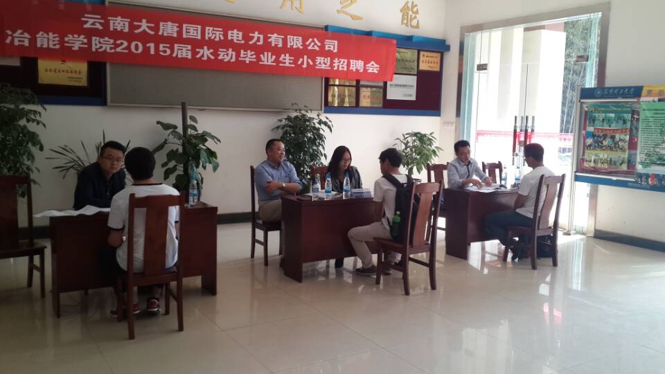 一楼大厅举办能源与动力专业(水方向)毕业生小型招聘会。云南大唐国际的红河发电公司、那兰水电公司、李仙江水电公司、文山水电公司来魔镜号