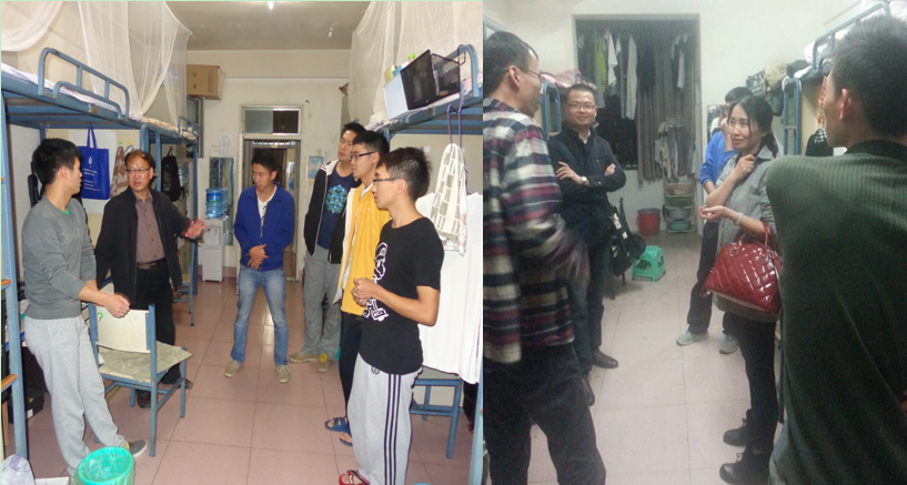 党政领导在辅导员的陪同下分头走访了学院莲华校区学生宿舍。