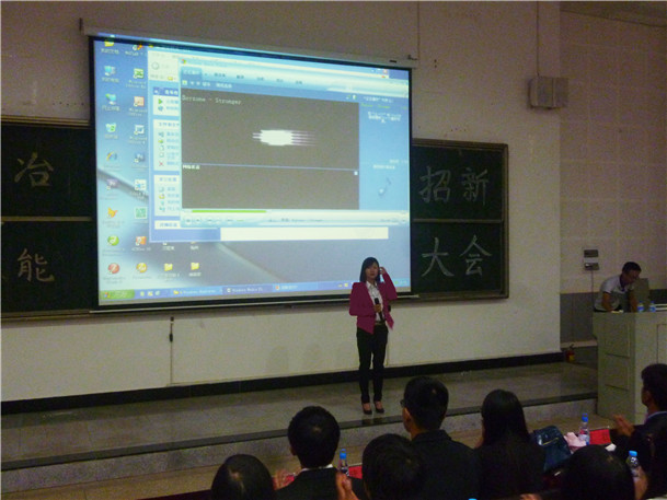 大会开始,首先令狐欢欢老师对2014级新同学的到来表示热烈欢迎,并向全体新生介绍了学院团委、学生会近些年的工作成绩;阐述了一名优秀学生干部应当本着“全心全意为同学服务”的宗旨,在工作的过程中锻炼自我;她希望全体新同学在四年的大学生涯中,将学习或实践行动起来,收获充实而完美的大学生活。紧接着各部门按照顺序依次走上讲台,通过ppt展示的方式对各自的部门做了详细的介绍。每位演讲的学生干部都满怀自信,沉着冷静,赢得了现场同学们的阵阵掌声,提出了自己部门的招新原则及要求。最后2014级新同学向各自感兴趣的部门递交了报名表。大会在一片欢腾中落下了帷幕。