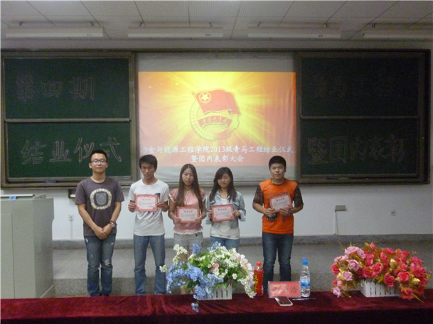 2014年5月20日晚上7点,冶金与能源工程学院在中心区教学楼118教室举行第四期“青马工程”结业仪式暨团内表彰大会。