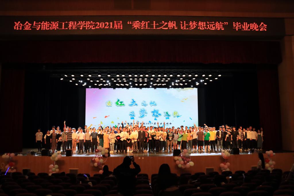 2021年6月13日晚,冶金与能源工程学院在呈贡校区红土会堂顺利举办2021届“乘红土之帆 让梦想远航”毕业晚会。学院党政领导、各系主任、17级毕业班班主任、学院教师及全院400余名学生参加晚会。