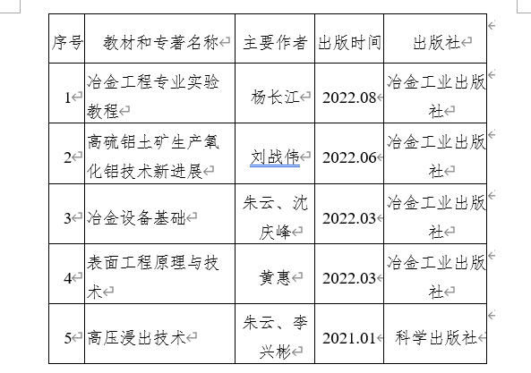 本年度,出版研究生教学或教参的教材和专著5部,授课对象为冶金工程专业研究生。