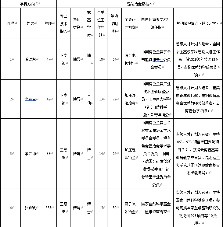 人才辈出、桃李芬芳。形成了本科-硕士-博士(含专业硕博士)-博士后的完整人才培养体系,生源来自五湖四海,以培养德智体美劳全面发展的社会主义建设者和接班人为己任;与中科院过程所共建提前批次招生的菁英班。学科立足特色与优势,面向国家战略培养人才,毕业生中涌现出以徐祖耀、殷之文、张国成、戴永年、彭金辉5位院士为代表的科技创新人才,以党的十九大代表、云南省政协主席李江等一批省部级和基层党政领导干部为代表,以中国稀土集团党委书记董事长敖宏为代表的企业家和基层工程技术人员等一大批卓越人才。向国内外输送本科10000余人、硕士2000余人、博士400余人,为“一带一路”沿线国家培养国际化人才2000余人。获国家二等奖2项,全国百篇优博论文1篇、提名2篇。