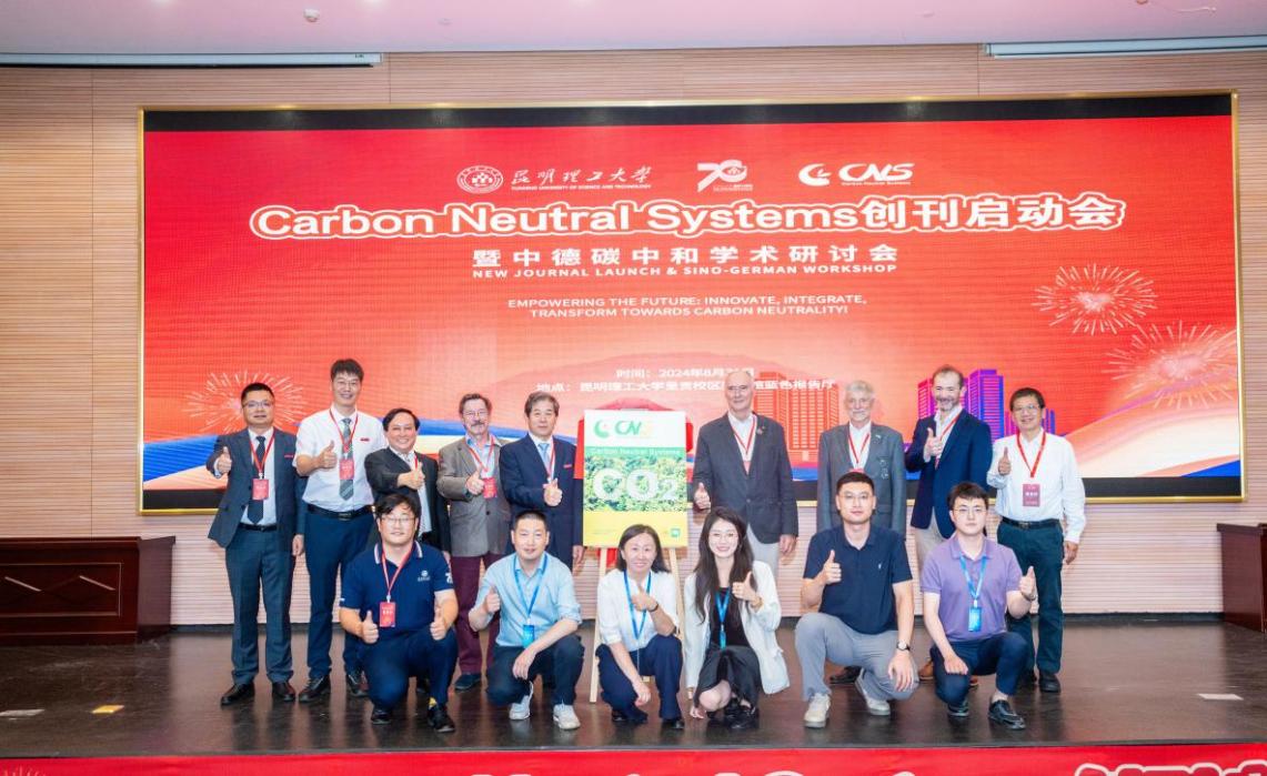 新刊启动仪式上王华校长、侯正猛院士、Hans-Peter Beck院士揭开期刊封面,宣告Carbon Neutral Systems期刊成功创刊。