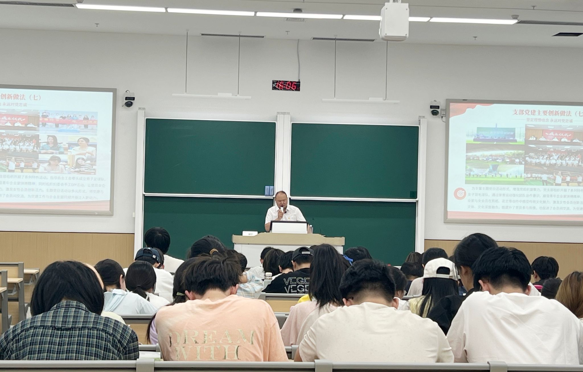 5月13日下午,在滨江校区公共教学楼教室,王皓以《厚植青春拔节向上的根基——深入学习贯彻民营企业重要讲话精神》为主题,为在场近200名师生带来了一场别开生面的“思政课”。