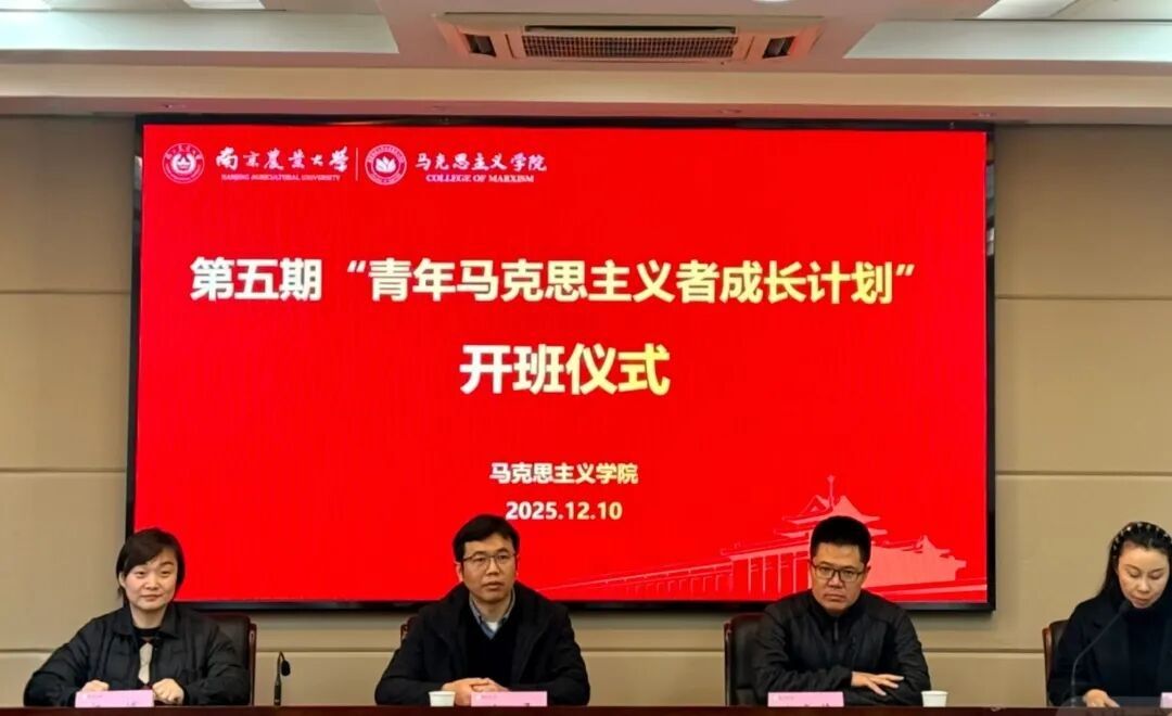 2025年12月10日,南京农业大学马克思主义学院第五期“青年马克思主义者成长计划”开班仪式在党校教室举行。院党委书记刘勇,校学生工作部、研究生工作部副部长王春伟,院党委副书记杨博出席,仪式由马克思主义学院思政教育主管张嫦娥主持。